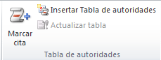 Insertar tabla de autoridades: Sirve para enumerar las autoridades citadas en el documento